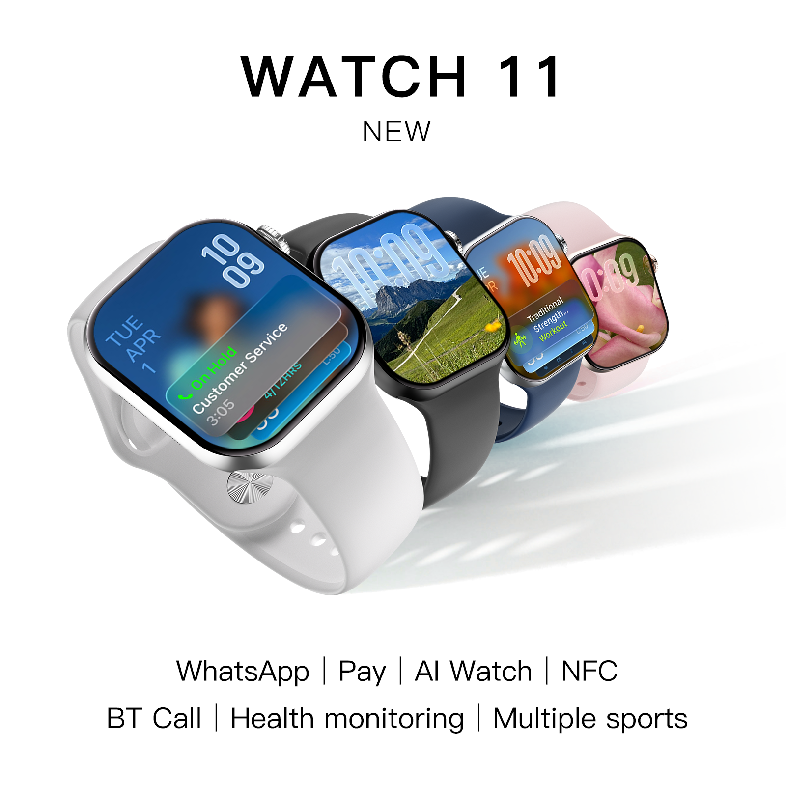 Multi-sport modes including running, cycling, swimming, yoga. GPS tracking, calorie burn, distance measurement.